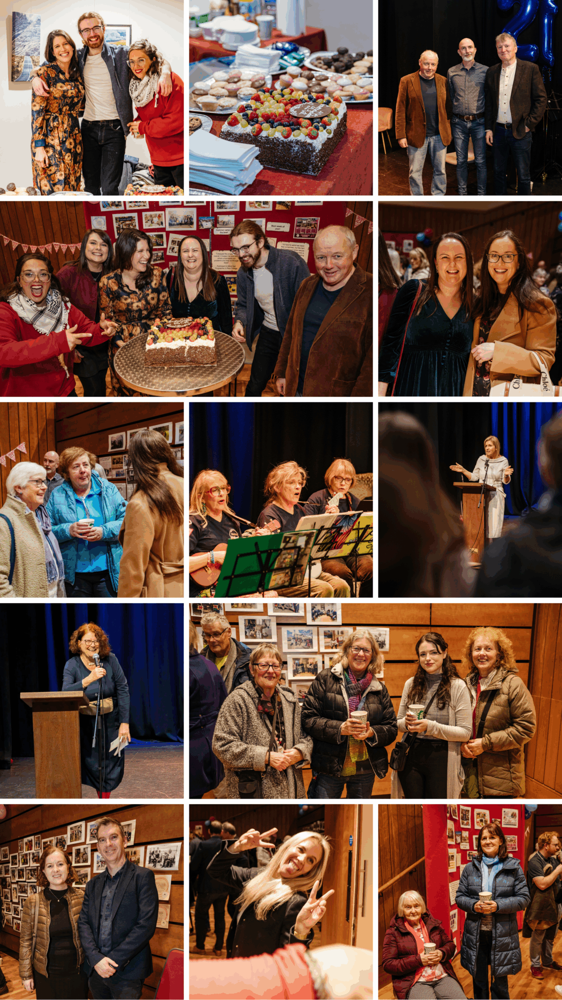 When guests arrived at the Town Hall, they were met with a display of photographs stretching across two decades of programmes, events, and everyday moments. Community members moved slowly along the walls, pointing out faces from every era of the FRC’s life. There were stories, laughter, and the familiar surprise of recognising someone as they once were. For many, the photos offered a moment to take in just how much time has passed; projects that once defined a chapter of the FRC now long completed, little ones who once attended baby groups now well past those early days, and faces of people who are no longer with us but remain part of the memories and milestones that shaped the FRC. It was a gentle reminder of how quickly life moves, how people change and grow, and yet how the Family Resource Centre has remained a steady presence.